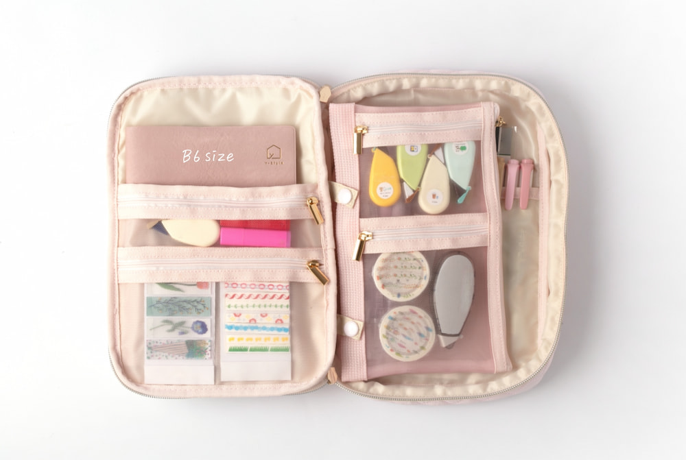 複数冊の手帳や文房具もすっきり収納でき、取手付きで持ち運びも便利な手帳ケースです。