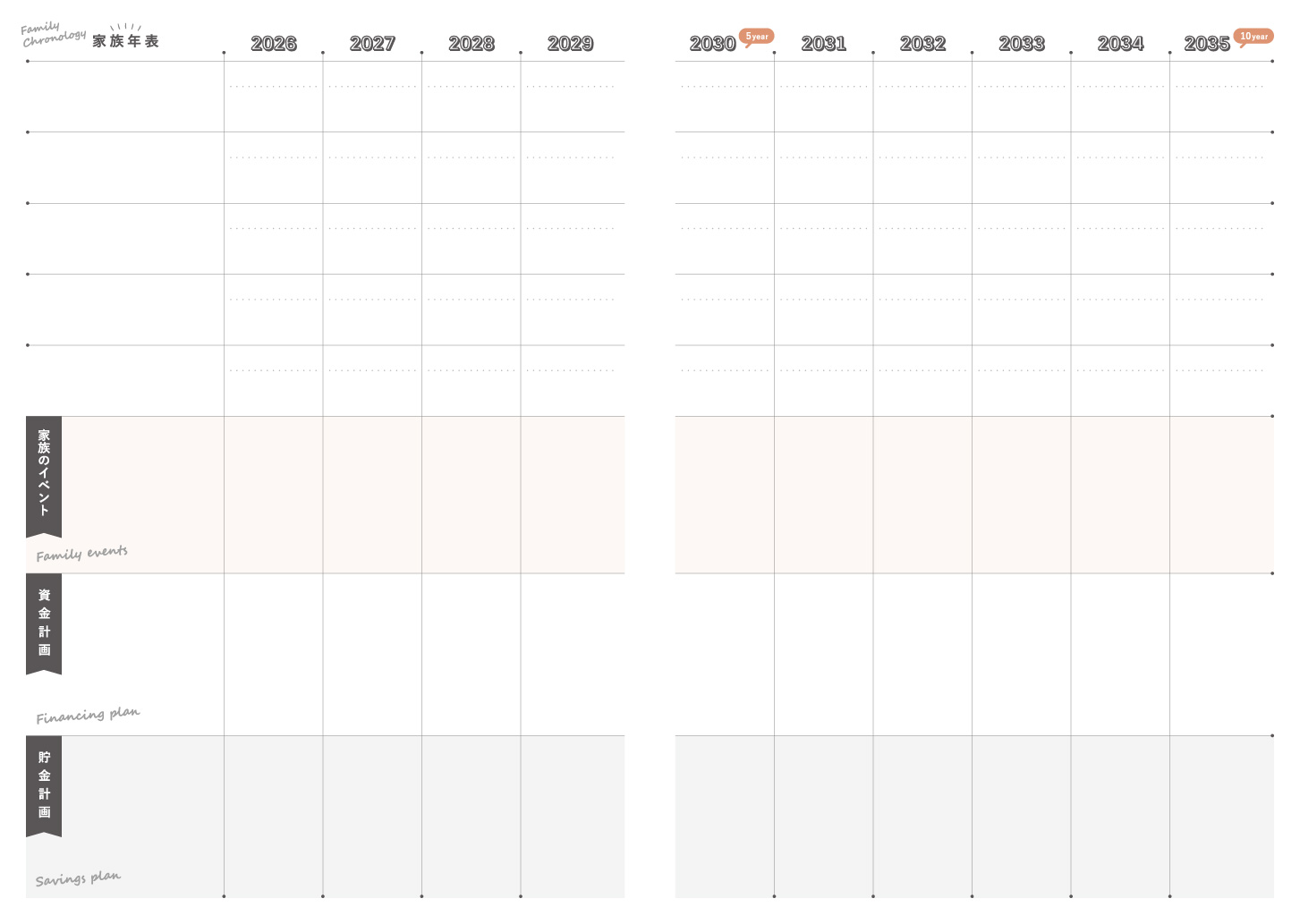 必要なお金の計画が記入できる「家族年表」ページです。